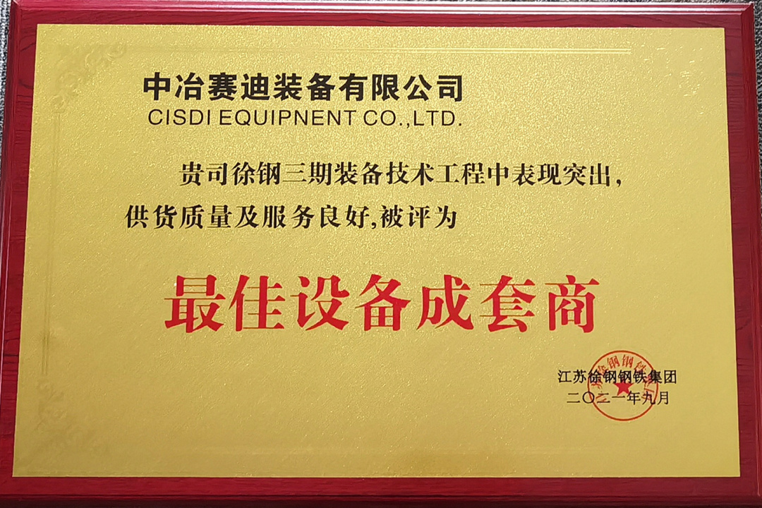 2021年9月,賽迪裝備在徐鋼三期裝備技改工程中表現(xiàn)突出,供貨質量及服務良好,被江蘇徐鋼鋼鐵集團評為“最佳設備成套商”。