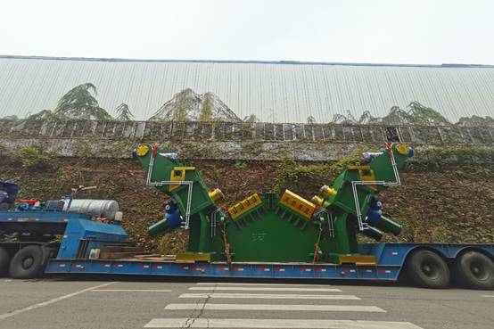此外,為保證設備順利發(fā)運,在項目啟動之前,制造中心發(fā)運組就專門針對這兩件大型設備的運輸情況進行了初步運輸方案摸底,多家大件運輸公司同時參與。在正式運輸前,制造中心生產(chǎn)部提前做好了所有發(fā)運準備工作,如運輸選車、制作工裝、勘路、制定排障方案、申請超限運輸證、優(yōu)化運輸路線等,終于在10月12日成功實現(xiàn)發(fā)運出廠,并將由專車護送前往湖南衡陽業(yè)主現(xiàn)場。