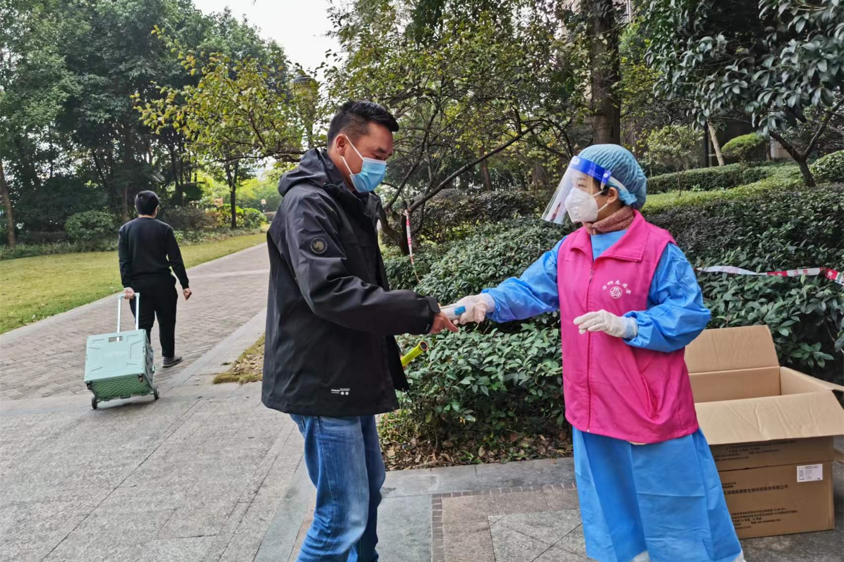 為了早日戰勝疫情,回歸正常生活,也為了實現與兒子的約定,文麗琴約上同樣是黨員的萬霞義無反顧地加入了志愿者隊伍中,利用工作之余的空閑時間進行志愿服務。從11月18日以來,兩人白天在小區核酸檢測點維持秩序、發放抗原檢測試劑,吃過晚飯還要到社區辦公室封裝抗原檢測試劑,有時候甚至會忙到夜里10點才能結束一天的志愿服務。每天悶在防護服下數個小時,原本不愛出汗的兩個人卻經常都是汗流浹背。
