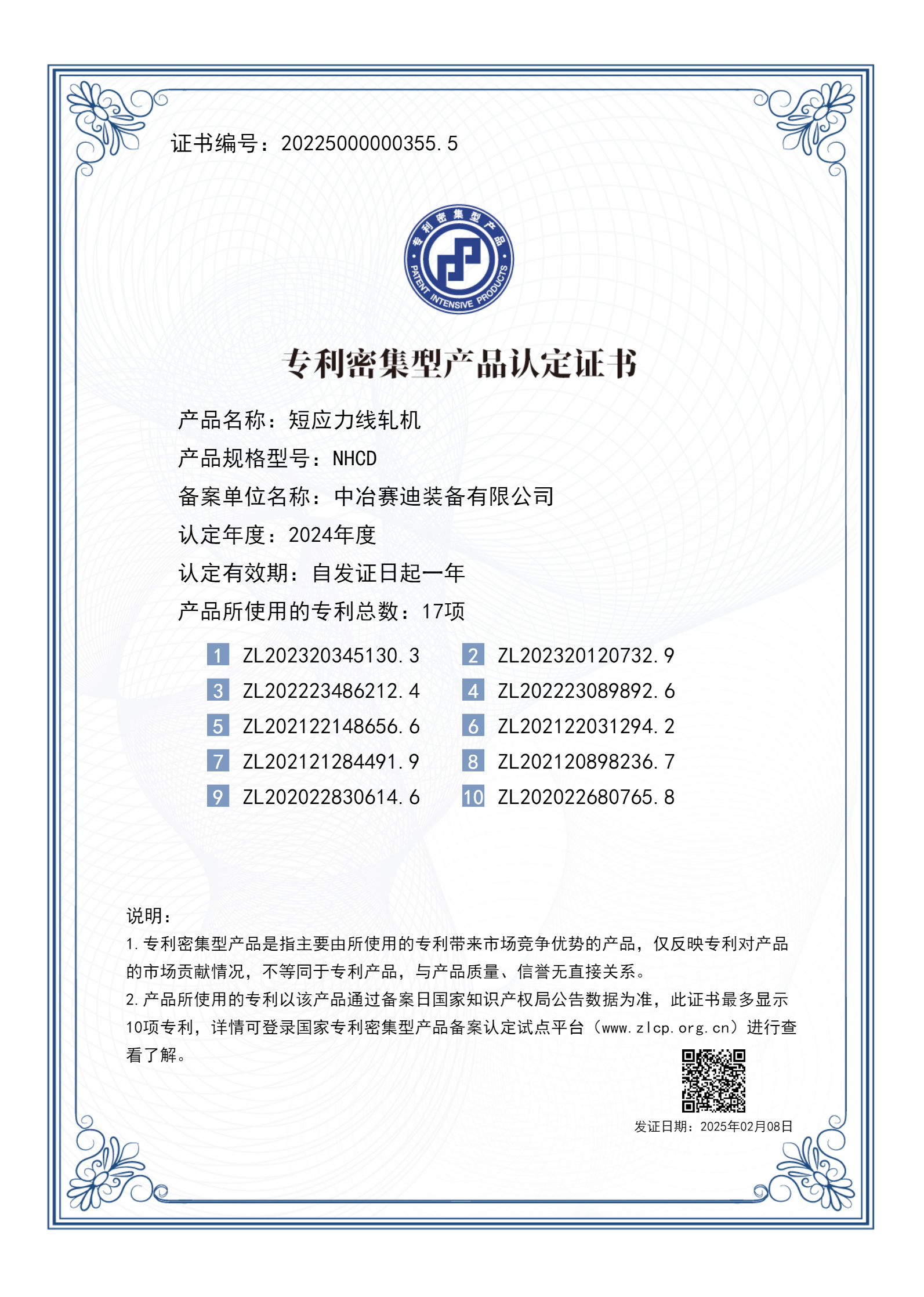 近日,國家知識產權局公布了2024年度專利密集型產品認定結果,中冶賽迪裝備申報的短應力線軋機、模塊化高速軋機兩項核心產品,依托知識產權價值,憑借突出的技術創新能力成功通過認定。